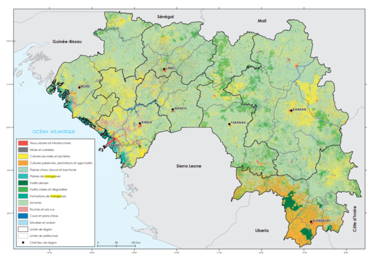 Carte d’occupation des sols en 2020. Atlas du zonage agroécologique de la Guinée, ANASA/IGNFi 2023, Author provided (no reuse)
